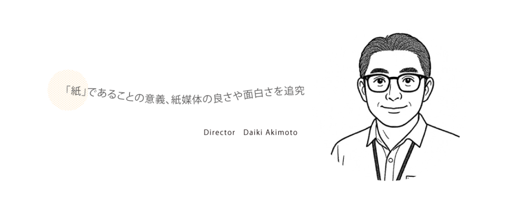 時代はデジタル・AIがメインストリームだけれど、いつまで経っても「紙」であることの意義やメリットはあると思う。紙だからこそ伝えられること、アナログだから味わえる楽しさ、そんな紙媒体の良さや面白さを追究できればと考えています。